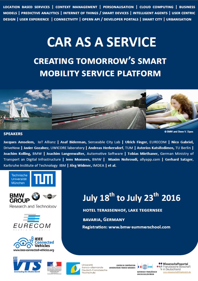 Université d’été pour jeunes chercheurs: "Car as a service - creating tomorrow’s smart mobility service platform" du 18 au 23 juillet 2016, au Tegernsee, en Bavière.